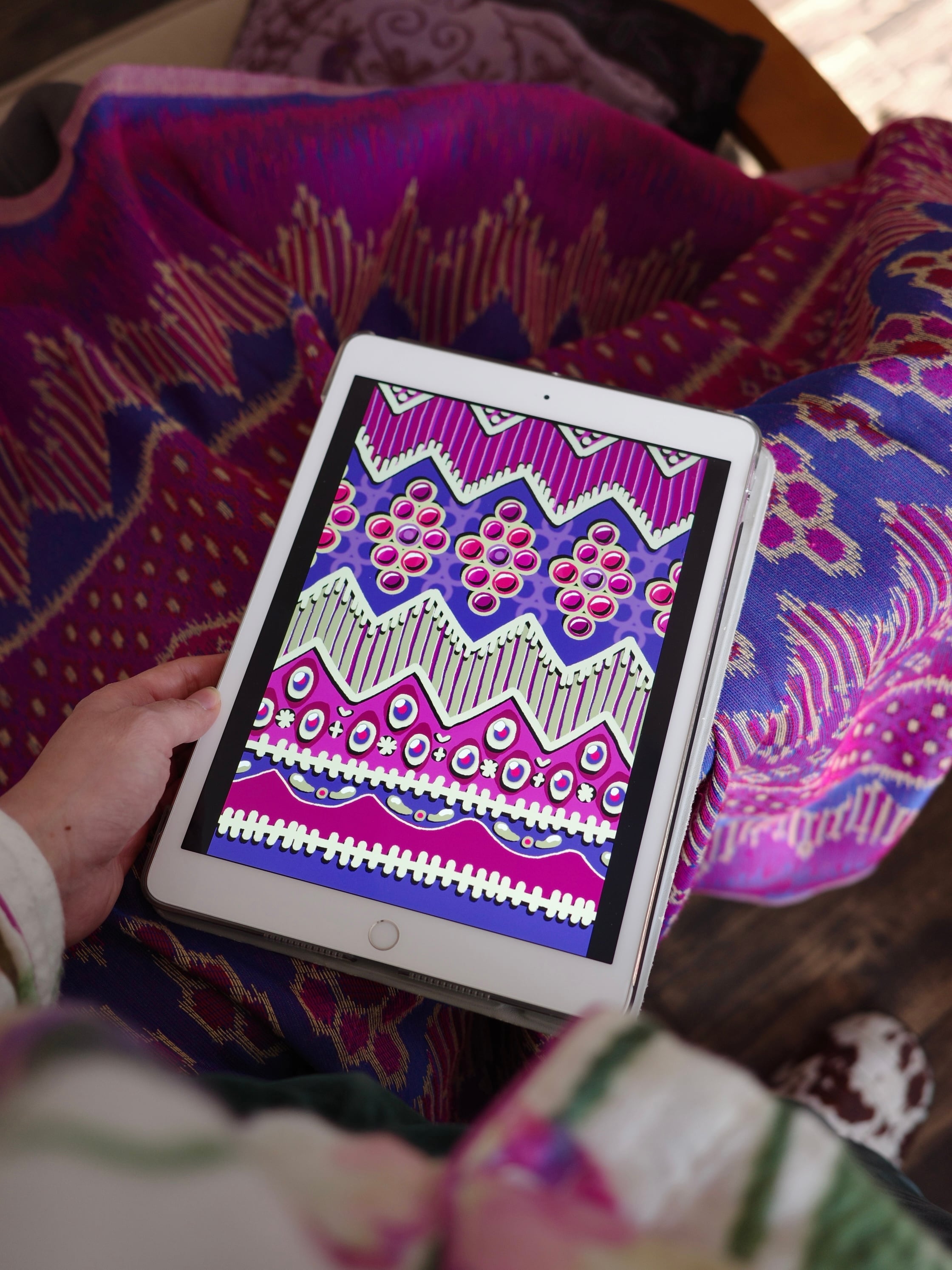 ・イラスト:ミャンマーで買った生地